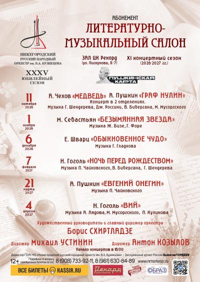 Шедевры отечественной и мировой литературы прозвучат для слушателей в исполнении артистов Нижегородского академического театра драмы им. М. Горького в сопровождении НРНО им. В.А. Кузнецова.